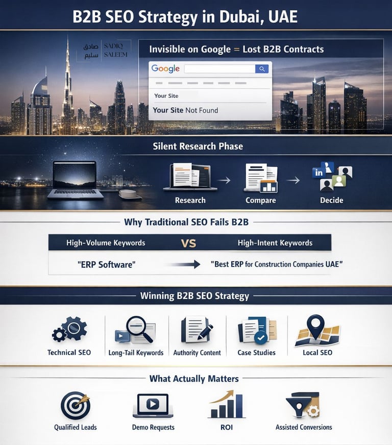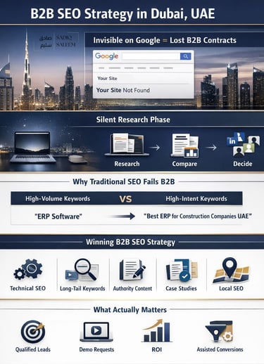 I've seen it happen too many times when I have discussions about SEO projects with clients. A logistics company loses a multi-million dirham contract because the procurement manager found their competitor first on Google. A software company misses out on an enterprise deal because their website didn't appear when the CTO was doing research at 2 AM (yes, B2B decision-makers search at odd hours).